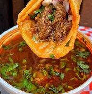 Flour Tortilla available per request. Garnish with Onions & cilantro , limes, radishes and your choice of salsa. Get ready to dip in Marias homemade consommé .